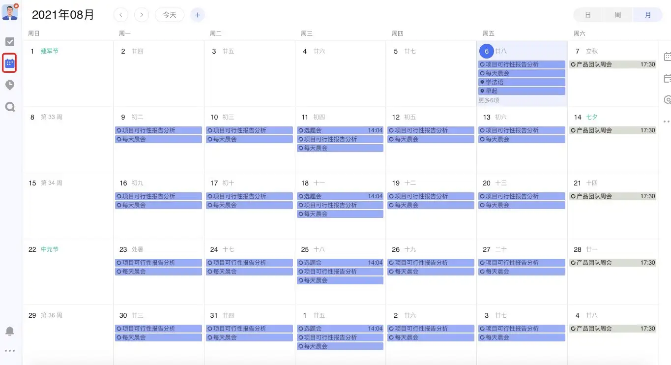 国内使用人数最多的待办事项管理app,一句话,功能强大,几乎你能想到的功能都可以在里面实现,可以实现All-in-One,全平台覆盖,手机、网页、电脑端、微信端都可以操作,同步也比较快,提供丰富的日历视图、甘特图、看板视图等;自然语言功能强大。缺点就是订阅制,想用高级功能就要一直付费(个人比较喜欢买断制);并且对有些用户来说,面面俱到的功能,反而会让人感到缺乏侧重。