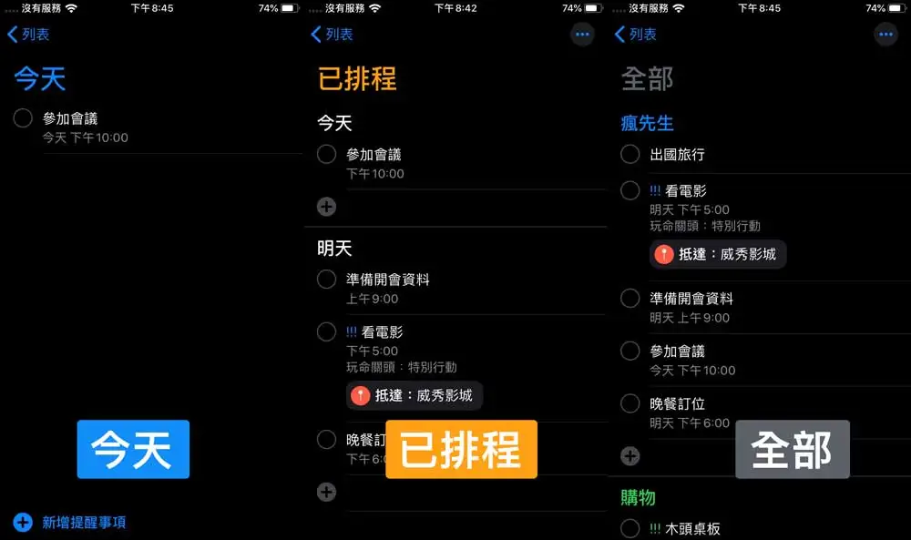 其实只要要满足:收集任务、整理任务、排程任务的需求,有很多其它工具可以做到待办清单要做的事,比如我们很多人很喜欢使用Apple自带的【提醒事项】,初级的To Do管理很容易满足。